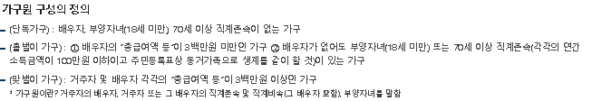 | 구분 | 단독가구 | 홀 벌이가구 | 맞 벌이가구 |
